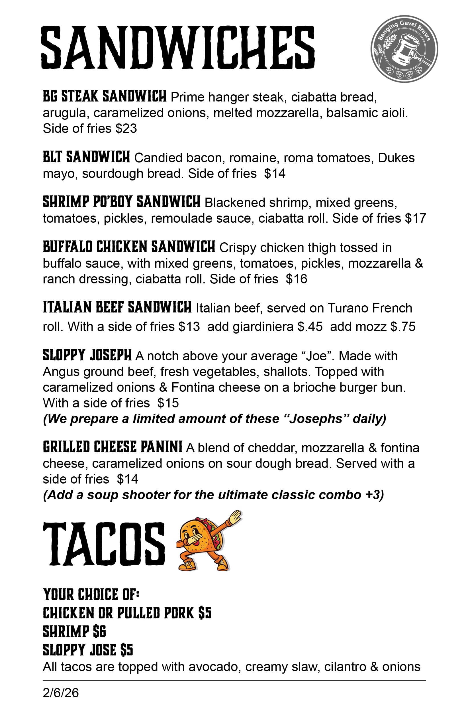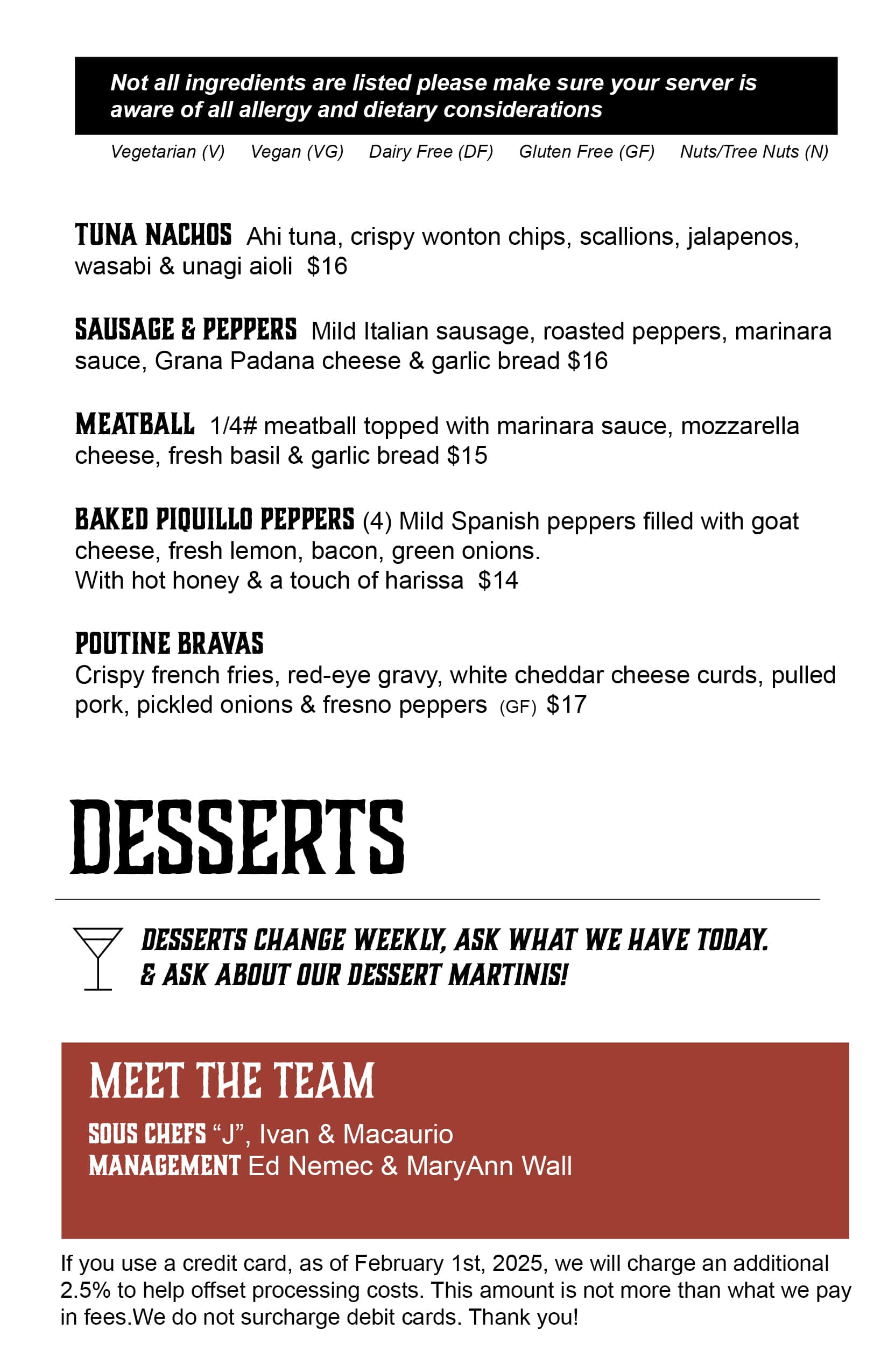 Happy Hour // Beer on Tap // Cocktails // Wine by the Bottle // Sharable Plates // Large Plates // Brunch // Kids